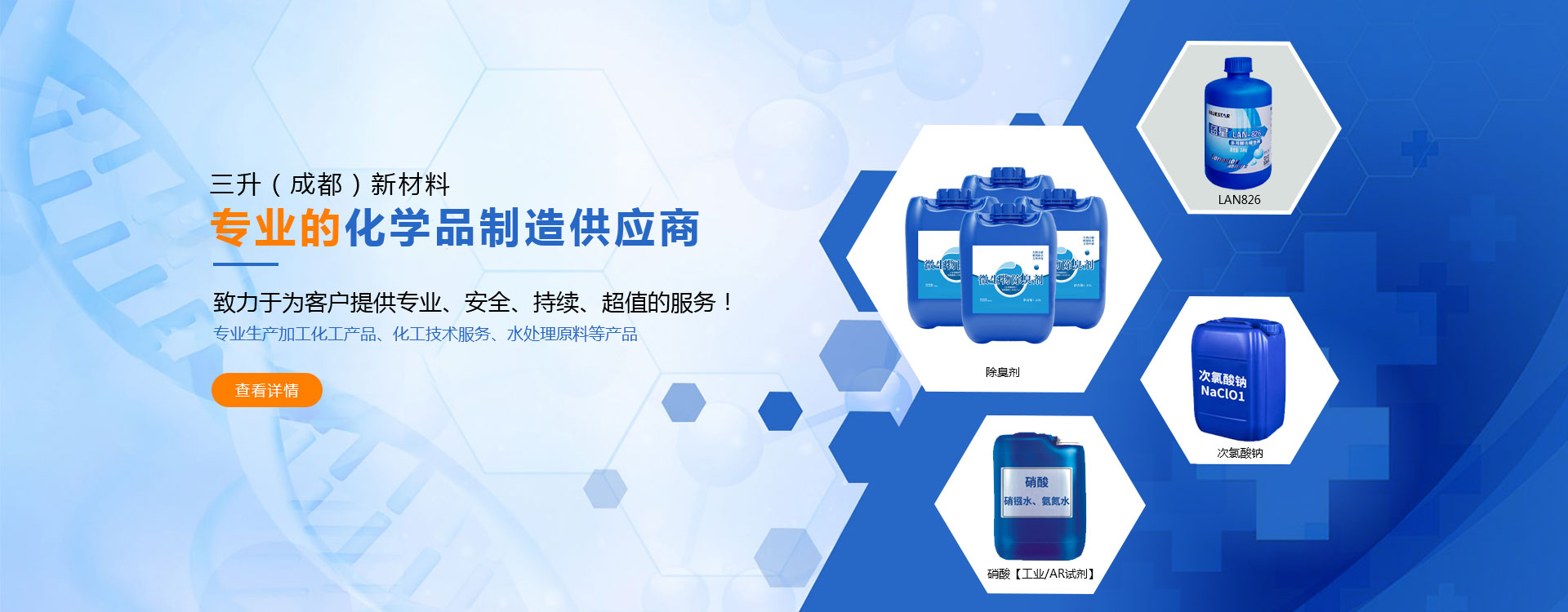 三升(成都)新材料有限公司自成立以來,不斷探索企業誠信經營之道,逐步從傳統貿易商發展成為理念先進、管理科學、客戶信賴的優質供應服務商及戰略合作伙伴. 三升(成都)新材料有限公司是化工產品、化工技術服務、水處理原料等產品專業生產加工的公司,擁有完整、科學的質量管理體系。